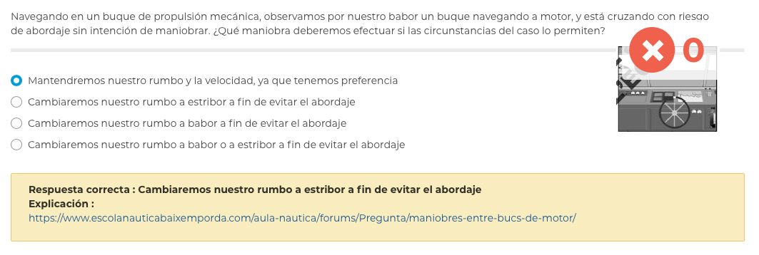Bueno, debería de maniobrar el otro buque, pero mira que en el enunciado te indica lo siguiente «y está cruzando con riesgo de abordaje, sin intención de maniobrar…» con esto ya vemos que la intención por parte suya, cero ?, por ese motivo hemos de maniobrar nosotros aunque tengamos preferencia.